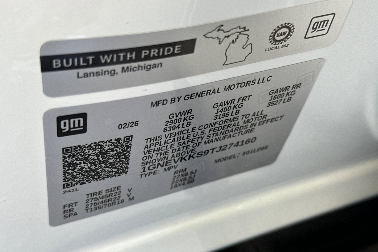 VIN: 1GNEVKKS9TJ274160