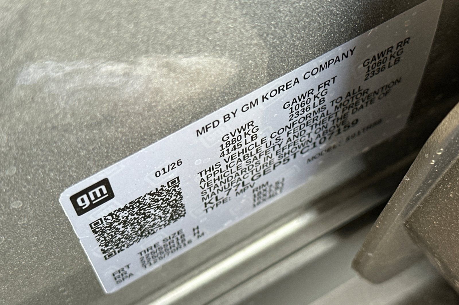 - Tires, 225/55R18 all-season, blackwall
