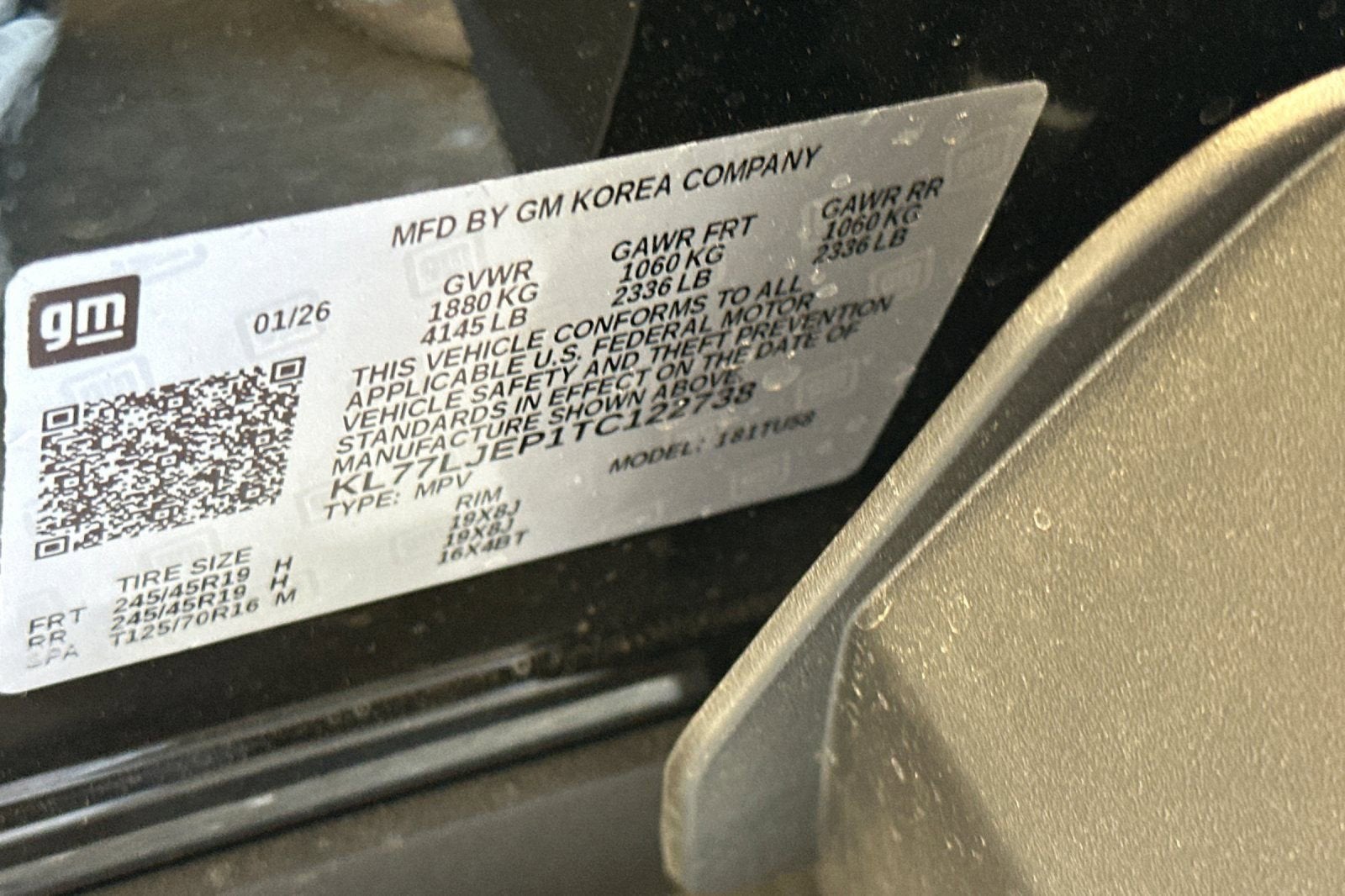 - Tires, 245/45R19 all-season, blackwall