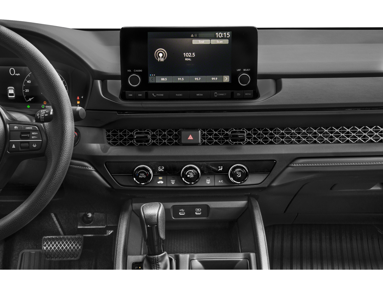 • Radio: 160-Watt Audio System -inc: 4 speakers, 7" color touchscreen, wired Apple CarPlay and Android Auto compatibility, Bluetooth® streaming audio, 1 USB-C 3.0A smartphone/audio interface, Wi-Fi hotspot capability and HondaLink subscription services, HondaLink subscription services comes w/a 3-month trial, Some features require geolocation data, At the end of the trial period, purchase of a subscription is required to continue service